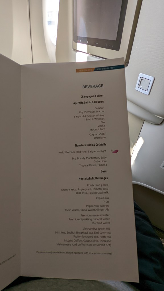 Note on the Plaza Premium Lounge in MEL Airport – this is the lounge you’ll have access to in Melbourne flying Vietnam Business Class. It’s very basic, but at least had a decent hot breakfast.