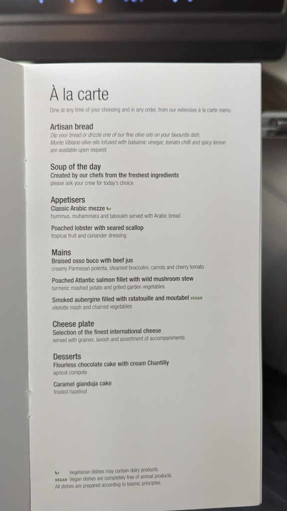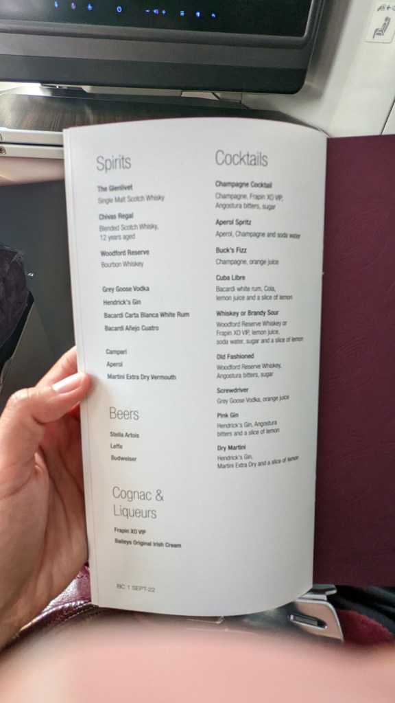 whilst not qatar’s famed q-suites, still an excellent hard and soft product with the best food I’ve had in the air