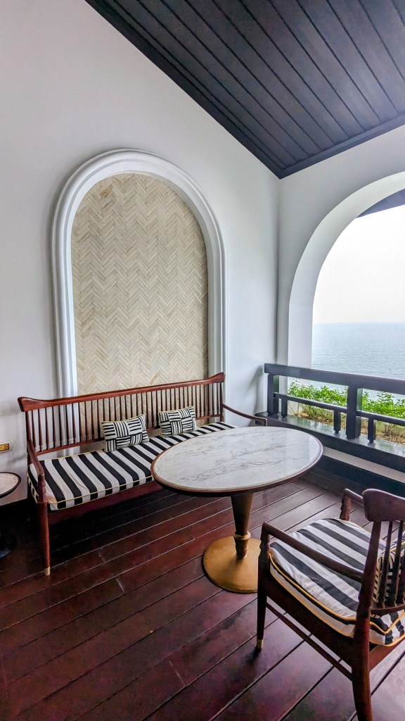 We stayed in the Classic Panoramic Ocean View room which was incredibly luxurious and more spacious than a lot of top class rooms at other hotels. The main bedroom area contained a very plush king bed, lounge, desk and TV (only local Vietnamese channels though – yes yes we’re not at a luxury resort to watch TV but each to their own), looking out onto an enormous covered balcony (tropical rain can’t touch you!).