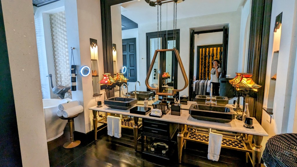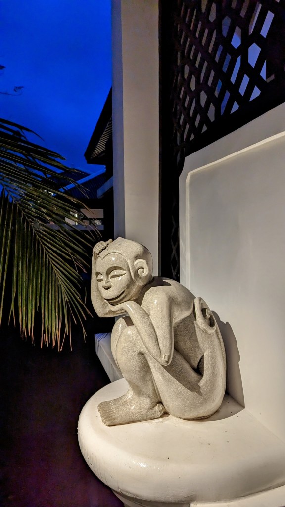 Highlights: the quality and thoughtful Bill Bensley architecture and interiors, a standout buffet breakfast, very cute monkeys wandering around, views over the ocean, a large private beach