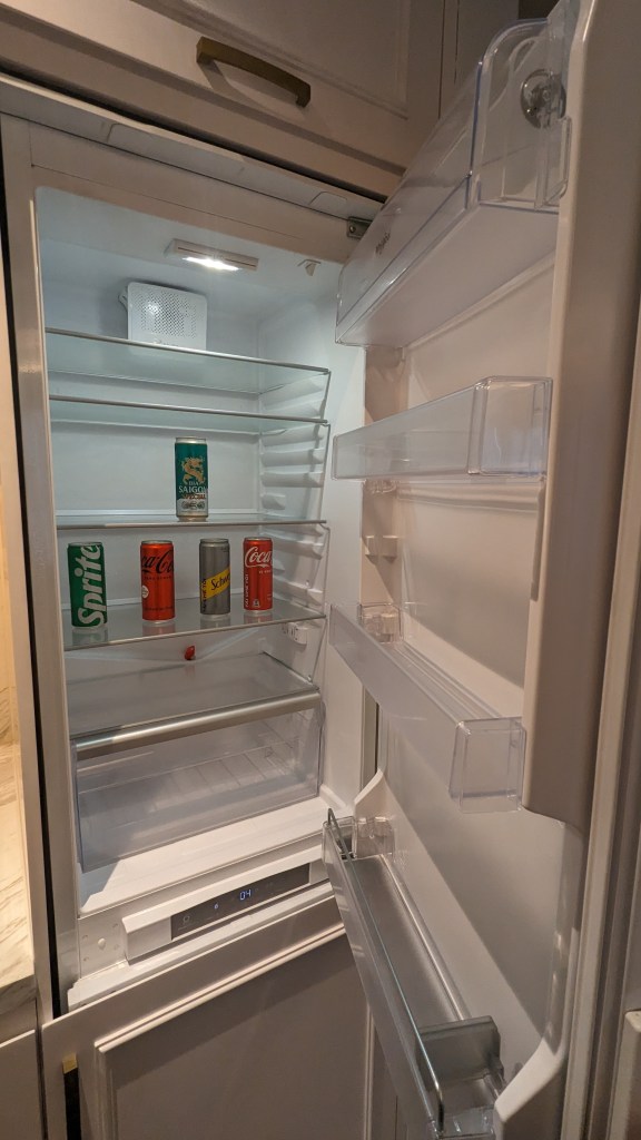 The kitchen was huge – plates, cutlery, a kettle and an electric stove with a full sized fridge with complimentary drinks restocked everyday. Note – if you plan on cooking you’ll need to request pots and pans. I imagine they don’t provide these as standard as given you’re in Saigon surrounded by delicious, cheap food no one’s actually doing any cooking!