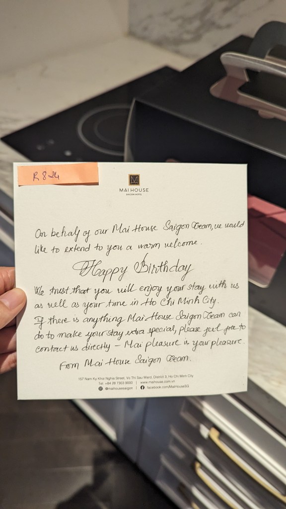 Overall: this might be one of my favourite hotels ever. It might not have the cachet of a famous international hotel chain, but IMO it’s far better – you get all the trappings of a Hyatt/Sofitel/insert brand name here but with a more intimate feel and personal touches. I can’t imagine staying anywhere else in Ho Chi Minh now!
