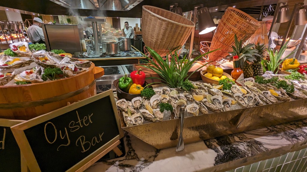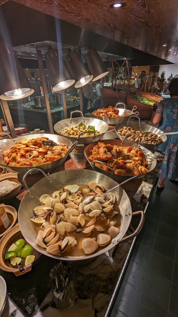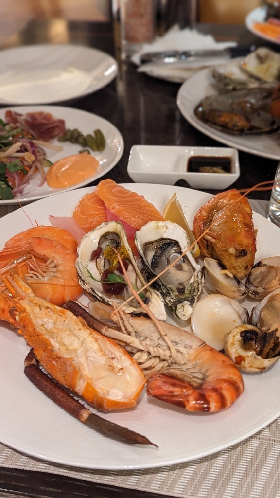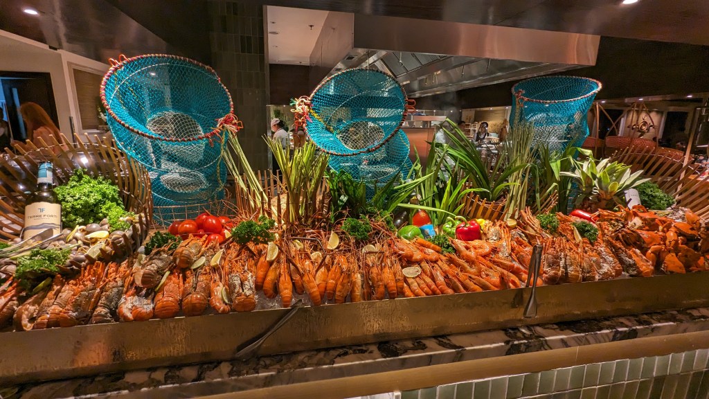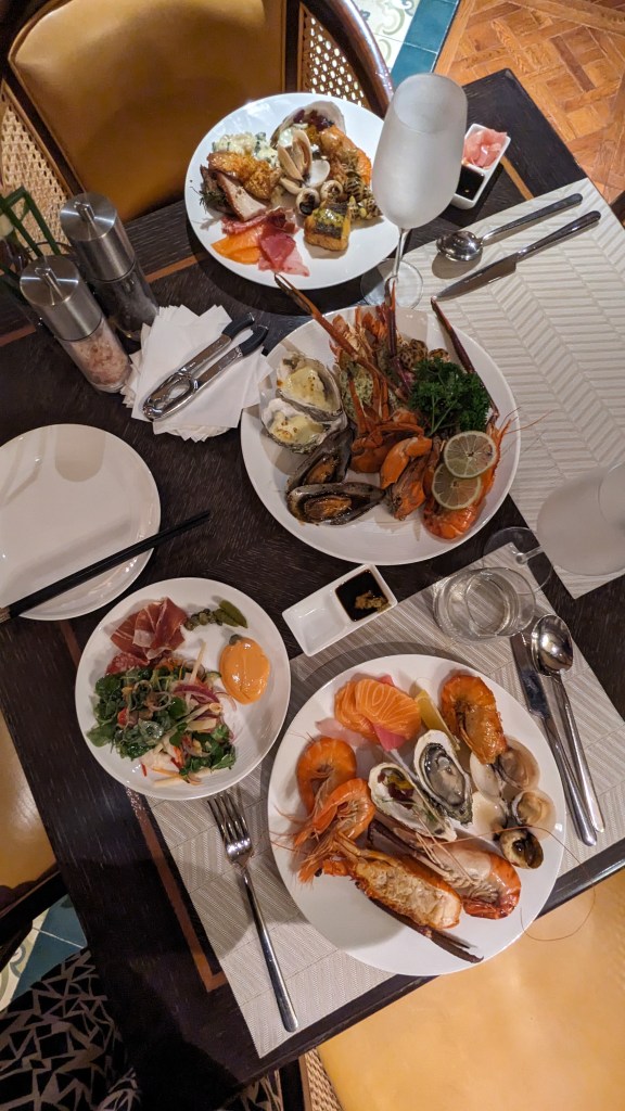 We’d heard about Mai House’s famous seafood buffet dinner – offered every Friday and Saturday night in their C’est La Vie restaurant. It did seem like a bit of a waste of a night out to eat in the hotel, but it seemed too good to be true and when can you experience a decadent seafood buffet for around AUD $50 per person! Please prepare yourself for the onslaught of photos ahead…and maybe also a snack if you’re already feeling hungry. Don’t say I didn’t warn you.