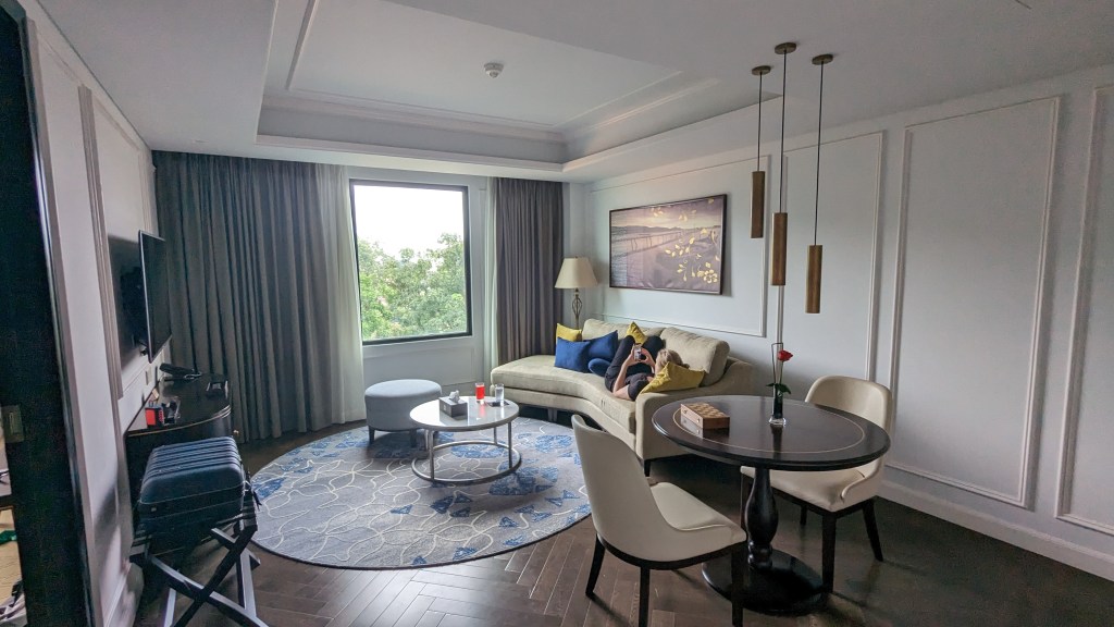 One of the reasons we chose Mai House was for its carpeted bedroom – sounds ridiculous I know but due to the humidity in Vietnam, a lot of hotels opt for tiling in their rooms which neither of us like. Personal preference but worth calling out if you’re similar minded! Here the carpet was plush and didn’t seem impacted by the humidity or weather at all. Huge win.
