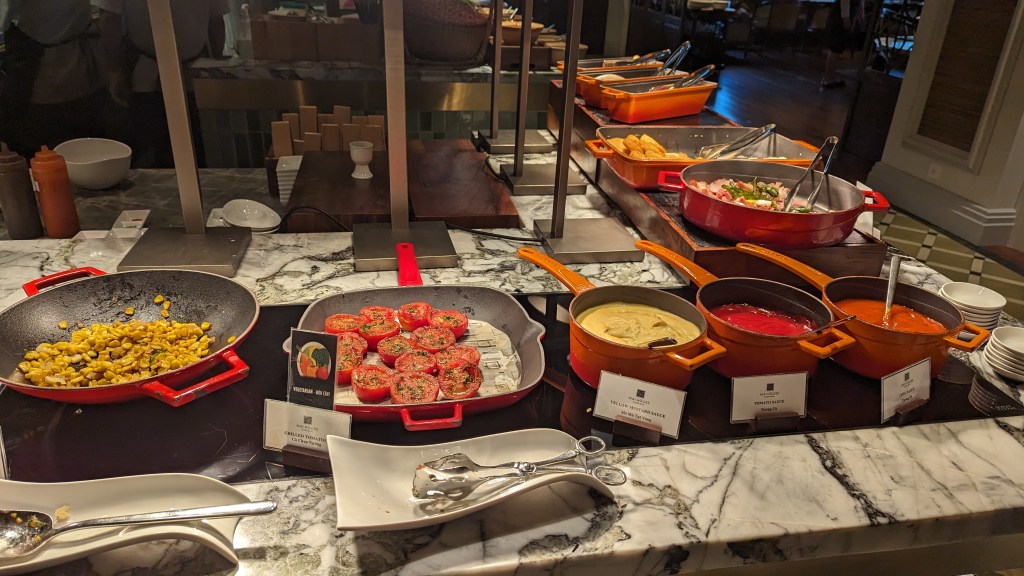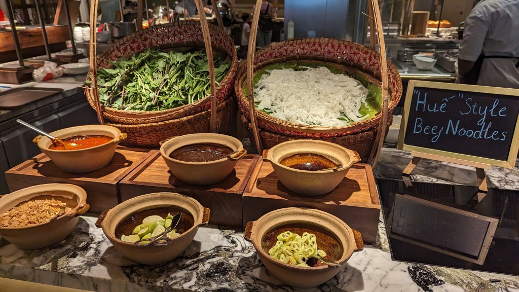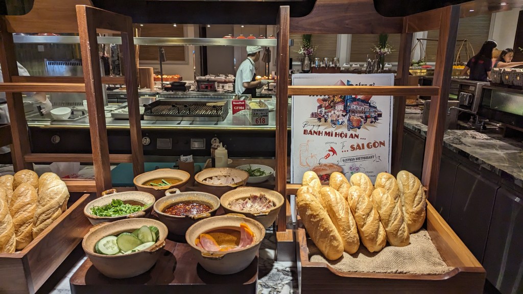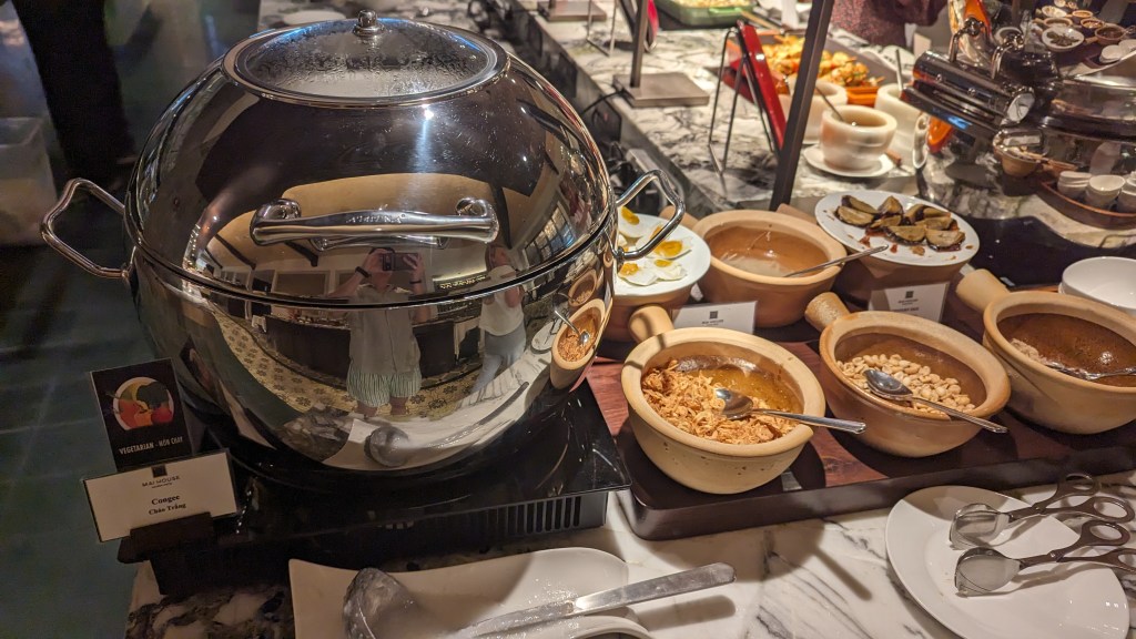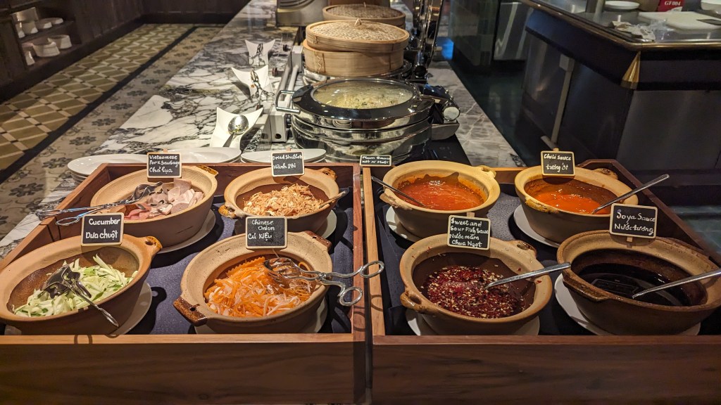 If you’ve read any of my other posts (see, for example: The Barracks, The Fairmont, Intercon Da Nang) you’ll noticed I have a (severe) weakness for an Asian hotel buffet breakfast. I am pleased to report that Mai House nails it on this front. You’ll find a whole range of local Vietnamese fare (banh mi, a daily rotating noodle soup such as pho), fresh cut fruits, pastries, cereals, cold cuts, congee, dim sum, waffles, French toast, a cooked to order egg station and hot Western options such as hash browns, bacon and sausages. The most stress I encountered all trip was trying not too overeat at breakfast so I could fit in lunch out and about in Ho Chi Minh!