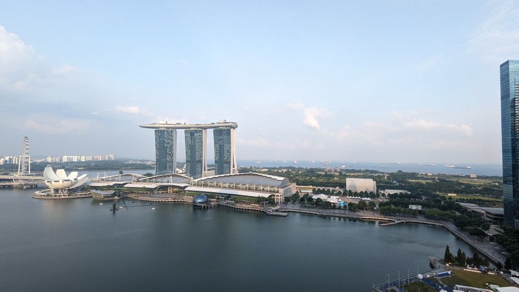 Outside, the Marina Bay Sands and its famous “ship” sky deck lights up, providing an iconic Singaporean experience for a couple of excited tourists!