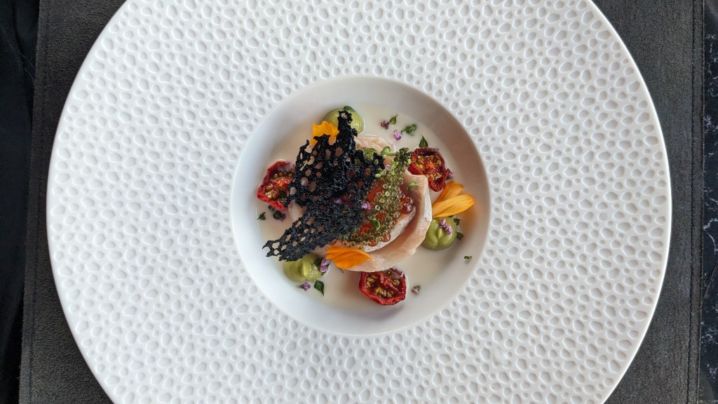 The Dutch kingfish ceviche was also beautifully presented, with the choice of plateware mirroring the holes in the seaweed cracker on top! As a firmer fish, kingfish stands up well to a punchier sauce and the vodka lime dressing was a nice balance of creamy and piquant. I’ll look past the creamed avocado – my pet peeve, and move right along to the ikura pearls which provided great pops of fishy flavour and texture.