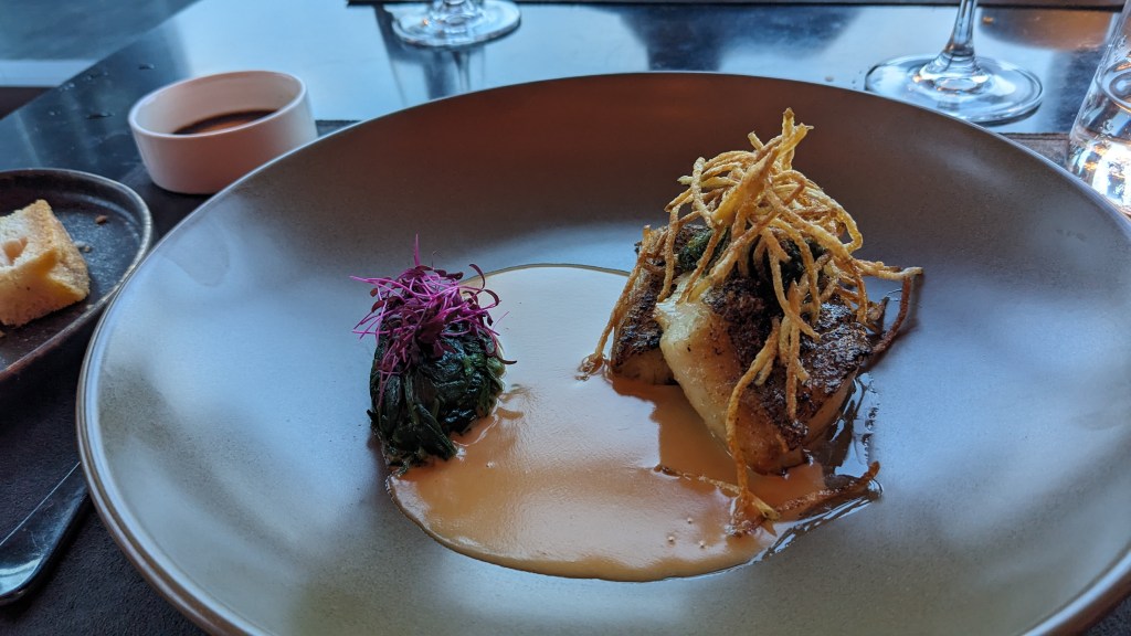 The pork itself was juicy and flavourful, served as a rolled paté and also minced into a delightfully crunchy cromesquis (distinct from croquettes as they are dipped in batter rather than egg and breadcrumbs). The sweet port wine sauce was a familiar compliment to the pork flavour, with just a little needed to elevate every porky bite. I also really enjoyed the crispy fried capers, a welcome addition to cut through the richness of the pork and glazey texture of the port wine.